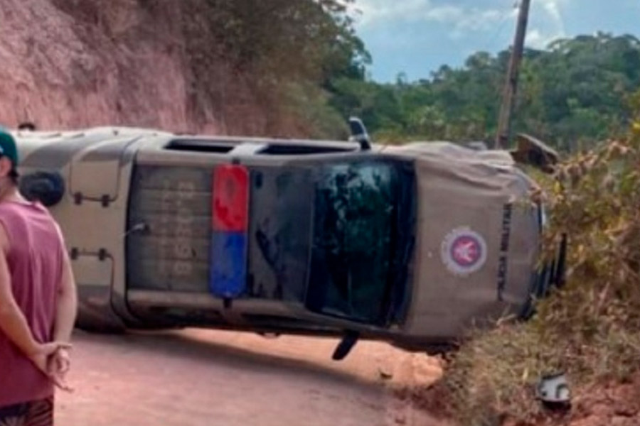 Viatura da PM tomba durante patrulhamento em estrada de chão em Porto Seguro