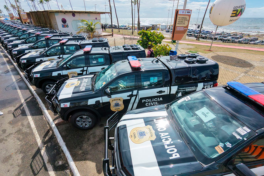 Do total de viaturas entregues, 100 são destinadas à Polícia Civil da Bahia (PCBA). Os veículos são do tipo pick-up, com cela e semiblindadas, e vão beneficiar 62 municípios. Desse conjunto, 36 unidades irão reforçar as ações durante o Carnaval 2026, sendo 24 na capital e 12 no interior. Em Salvador, Camaçari, Candeias, Cotegipe, Itaparica, Lauro de Freitas, Mata de São João, Saubara, Simões Filho, Valença e Vera Cruz já há previsão de distribuição dos novos veículos.