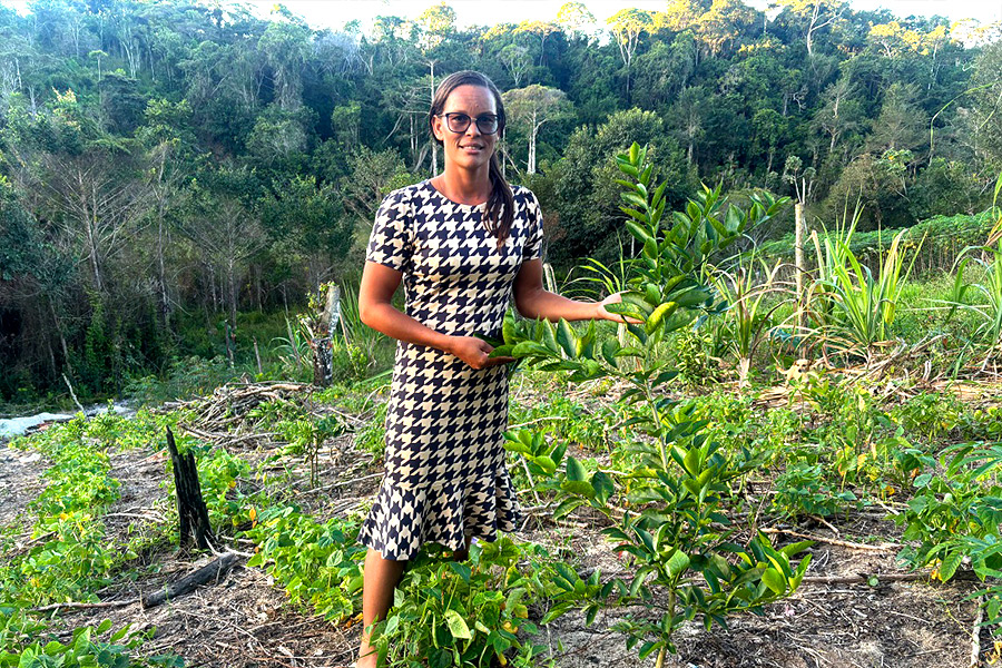 “A iniciativa iniciou em 2020 e foi implantada em 13 quintais da comunidade. Adquirimos as mudas e insumos que foram distribuídos para as mulheres participantes do projeto, tivemos orientação técnica para o plantio, adubação e manejo da terra. Desde então, já fornecemos a produção para diversos clientes e programa de alimentação escolar”, ressalta a presidente da Associação de Mulheres Produtoras Rurais na Comunidade Arara, Marleia Pereira Lopes Santos.