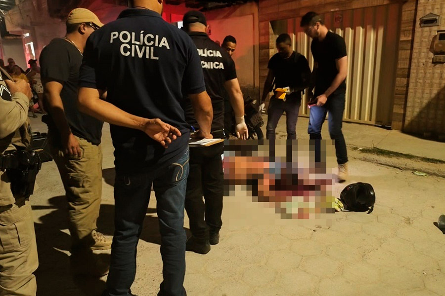 O corpo apresentava múltiplas perfurações, sendo impossível identificar a quantidade exata de disparos que atingiram a vítima. O portal do imóvel também foi atingido por disparos.