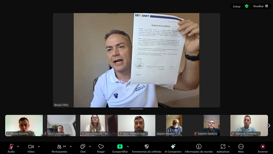 Com a assinatura da ordem de serviço, a expectativa é que as obras avancem com celeridade, garantindo segurança, mobilidade e retomada plena do tráfego no importante eixo viário que conecta o Sul da Bahia ao restante do país. “Quero, mais uma vez, lembrar que a Bahia reconhece e agradece a proposta apresentada pelo ministro Renan. Ele explicou com clareza, houve agilidade na liberação das licenças e a conquista está acontecendo, algo que poucas vezes vimos na história do Brasil”, pontuou o governador Jerônimo Rodrigues. A reunião contou também com a participação de outras autoridades, representantes do Governo do Estado e dos ministérios, além de prefeitos.