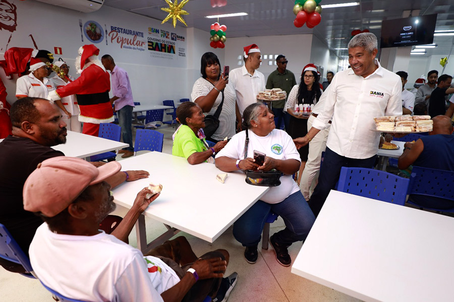 Nesta quarta-feira (24), aproveitando o clima natalino, a Secretaria de Assistência e Desenvolvimento Social (Seades) levou o Natal Mais Social ao Restaurante Popular Alaíde do Feijão, no bairro Liberdade, em Salvador, oferecendo refeição e mais dignidade para quem mais precisa. O governador Jerônimo Rodrigues visitou a unidade, tomou café e almoçou com o público presente, em uma ação de confraternização.