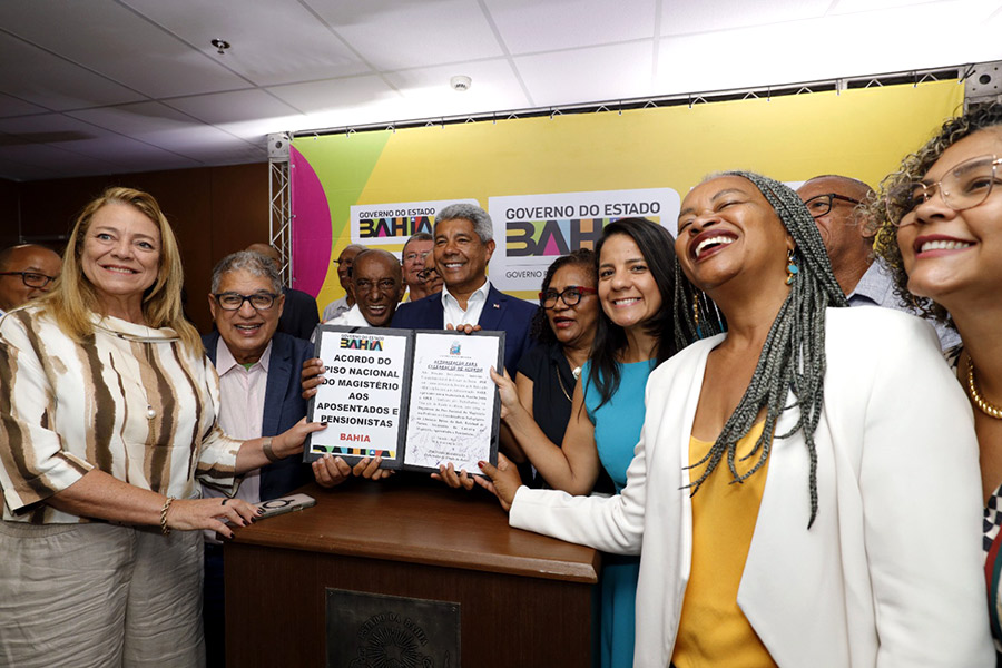 O Governo do Estado assinou, na manhã desta quinta-feira (18), o acordo que define as regras para o pagamento do piso salarial para aposentados, pensionistas, e ativos da Rede Estadual da Educação, licenciados e não licenciados, que não recebem o vencimento ou subsídio equivalente ao Piso Nacional do Magistério. A Ação é fruto de mediação, após decisão judicial, com o Sindicato dos Trabalhadores em Educação da Bahia (APLB), com o apoio da Procuradoria Geral do Estado (PGE).