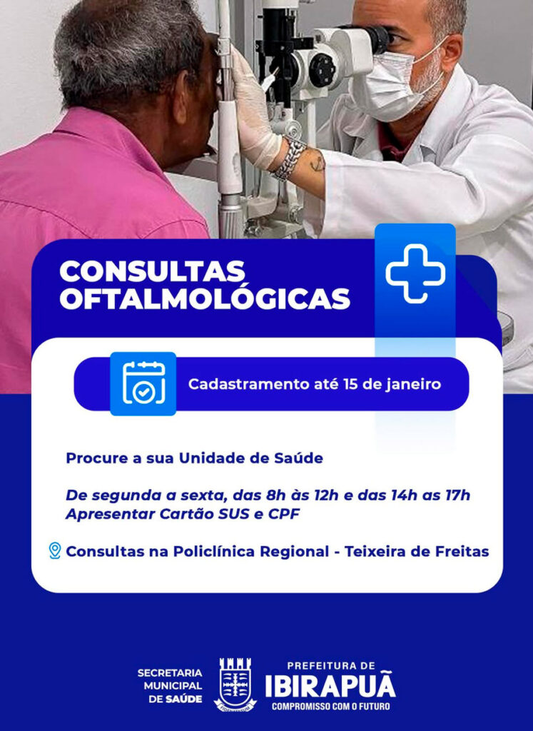 A Prefeitura de Ibirapuã, por meio da Secretaria Municipal de Saúde, segue ampliando o acesso da população aos serviços de saúde visual, garantindo consultas oftalmológicas para pacientes do município na Policlínica Regional de Teixeira de Freitas.