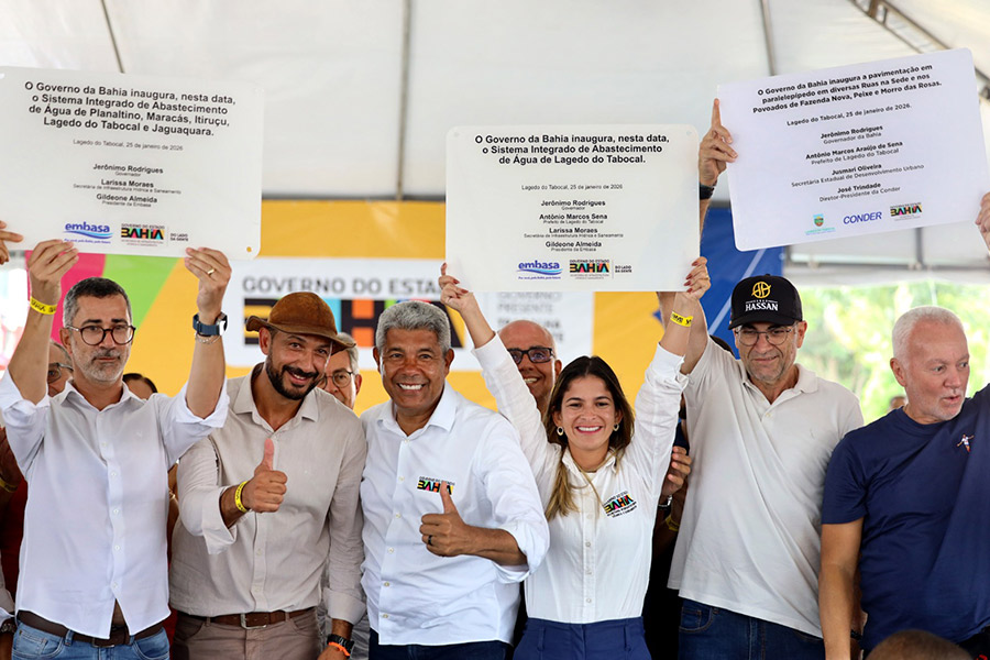 A agenda incluiu a entrega do Sistema Integrado de Abastecimento de Água, uma das maiores obras hídricas da região, que beneficia os municípios de Planaltino, Maracás, Lajedo do Tabocal, Itiruçu e Jaguaquara. O investimento ultrapassa R$ 180 milhões, garantindo mais segurança hídrica e melhor qualidade de vida para milhares de famílias. “Estamos falando de um investimento estruturante, que garante água de qualidade e dignidade para a população de toda essa região. Água é saúde, é desenvolvimento e é também prioridade do nosso governo”, afirmou Jerônimo.