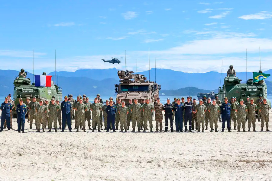 Franceses e brasileiros realizam missão de formação e projeção com cerca 1,3 mil militares dos dois países – Foto: Marinha do Brasil/divulgação