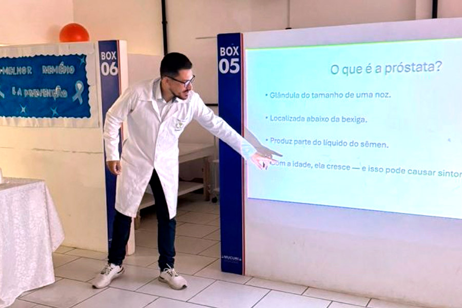 Logo após os exames, os participantes acompanharam uma palestra ministrada pelo farmacêutico Édipo Marés, que abordou a relevância do diagnóstico precoce, os principais sinais de alerta e a necessidade de manter os exames anuais sempre em dia. A fala foi direta, didática e motivadora, chamando a atenção dos homens para a responsabilidade com a própria saúde.
