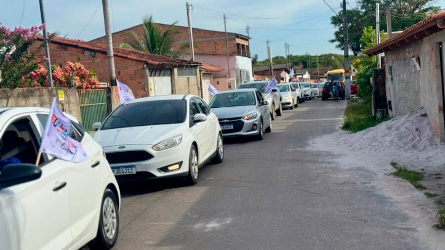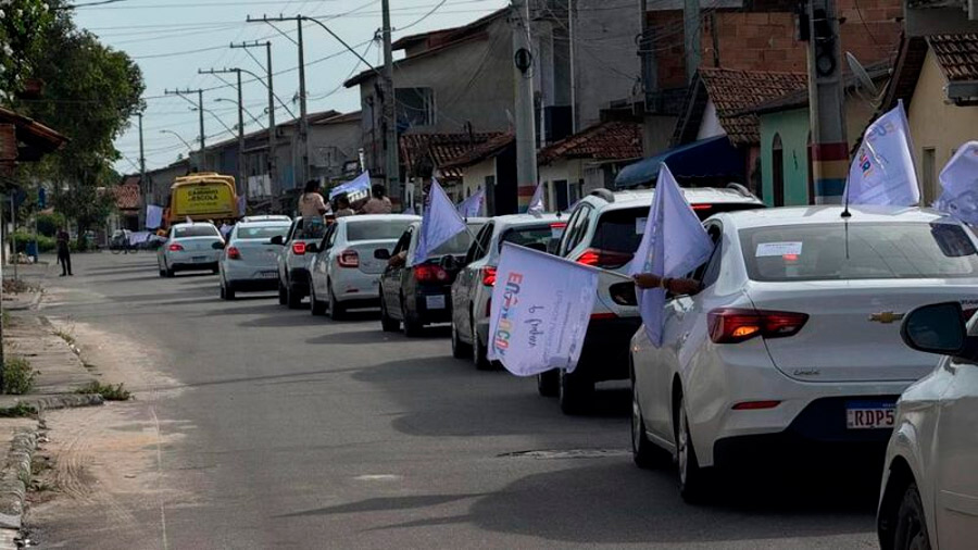 Um adesivaço marcou o começo da concentração nesta tarde, em seguida a distribuição de bandeiras e camisas temáticas para professores de língua portuguesa e membros das equipes escolares, animou o primeiro ponto do percurso de uma empolgante carreata, que atraia a atenção e recebendo aplausos da população e recebia aplausos pelas principais avenidas e bairros da cidade.