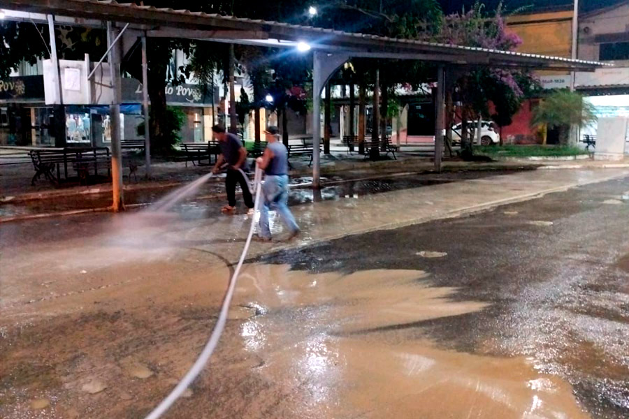 A Prefeitura de Medeiros Neto deu início ao processo de limpeza e lavagem das ruas do centro da cidade que foram inundadas pelas recentes chuvas. A ação, coordenada pela Secretaria de Obras e Infraestrutura, envolve uma equipe dedicada que atua intensivamente para remover lixo, entulhos e restos de materiais que ficaram nas vias afetadas.