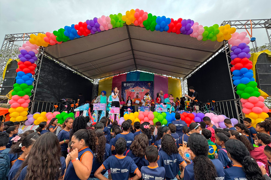 O Estádio Municipal de Medeiros Neto foi palco, na manhã desta sexta-feira (24), da tradicional Festa do Mês das Crianças, um evento consolidado como legado da atual gestão municipal. A celebração reuniu centenas de crianças da rede de ensino municipal, marcando um dia dedicado à alegria e ao cuidado com a infância.