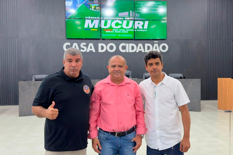 O professor Vagner Ialy Belém, presidente do CACS-FUNDEB, o contador Aldair Brito e o presidente da Câmara Municipal de Mucuri, vereador Hélio Alvarenga