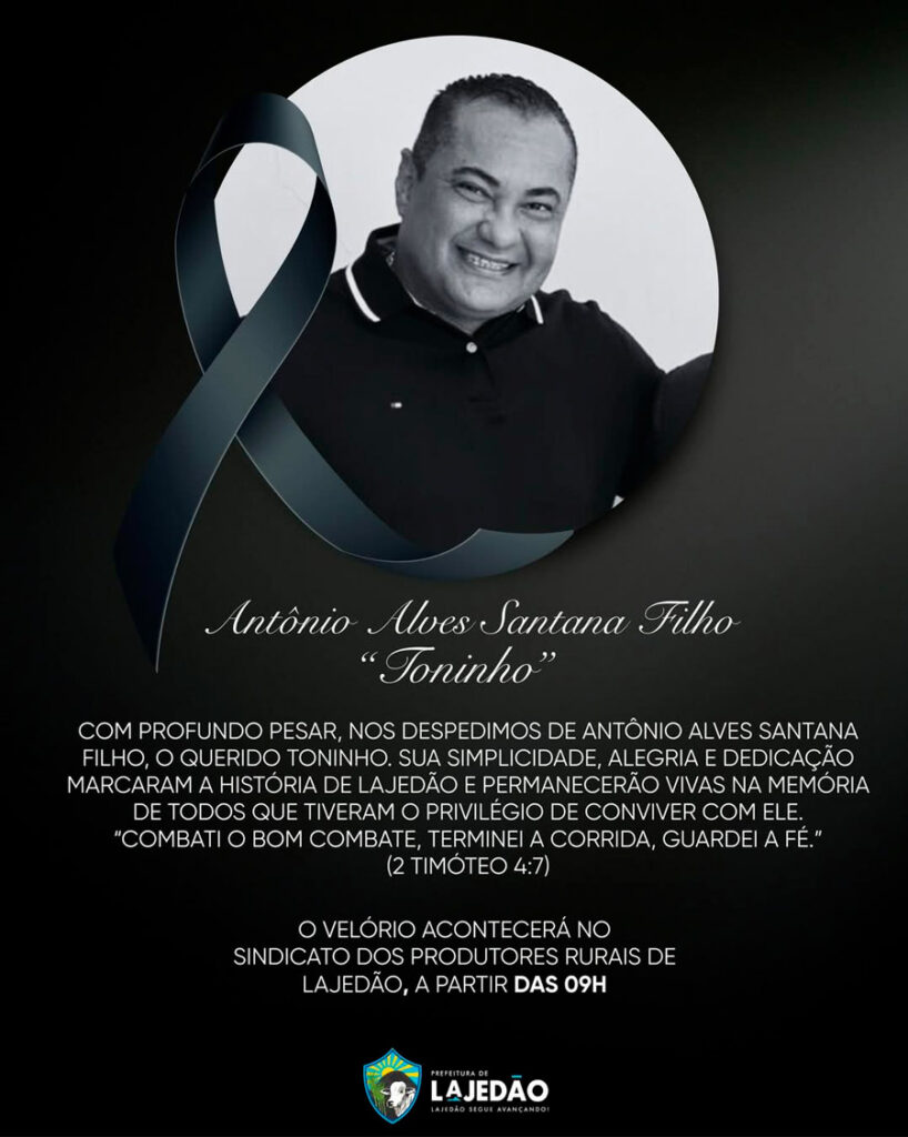 Servidor dedicado e figura bastante conhecida na cidade, Toninho Santana integrava a atual gestão municipal e desempenhava um papel fundamental na organização administrativa da Prefeitura de Lajedão. Ao longo de sua trajetória, construiu uma imagem marcada pelo compromisso com o serviço público e pelo bom relacionamento com colegas, lideranças políticas e a população.