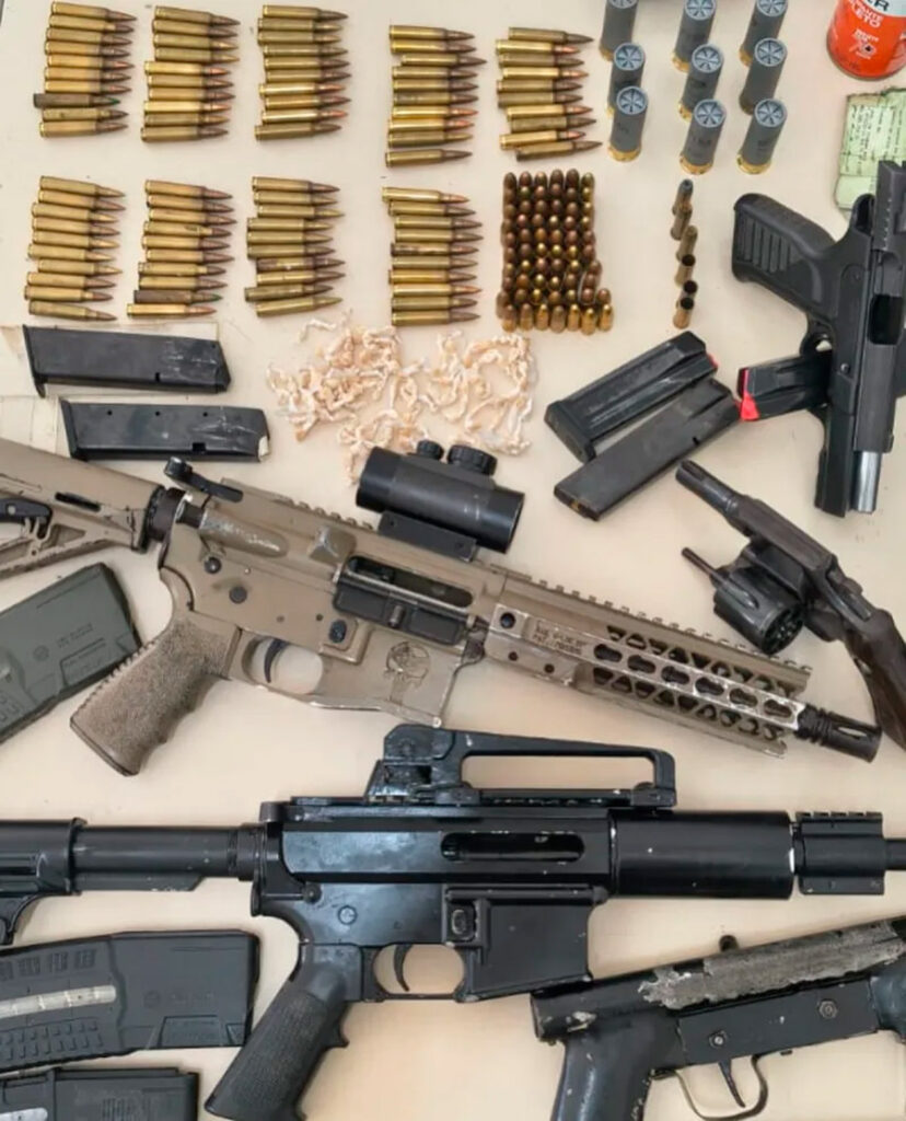 Na ação, foram apreendidos dois fuzis, um inclusive equipado com magnificador (luneta), para disparos à distância, uma espingarda calibre 12, uma submetralhadora, uma pistola, um revólver, além de drogas, farta quantidade de munições e um drone. Todo o material foi recolhido e apresentado à autoridade de Polícia Judiciária para a adoção das medidas legais cabíveis.