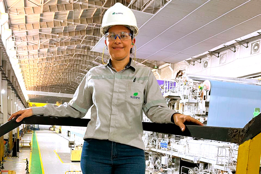 Kátia Freitas, soldadora na manutenção de máquina de papel, ressalta a importância do olhar feminino para o setor. “Quando iniciei na área, há mais de 10 anos, era a única mulher soldadora, e de lá pra cá sou um exemplo e incentivo para muitas mulheres ingressarem em funções que são dominadas por homens, mas que nós também temos total capacidade. O olhar atencioso e detalhista da mulher é um diferencial. Sou muito feliz na indústria de papel e de contribuir com o crescimento desse setor tão importante”, diz Kátia.
