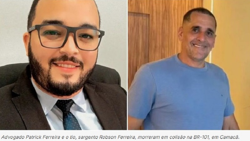 Um grave acidente na madrugada desta sexta-feira (3) matou o advogado Patrick Ferreira, que morava em Eunápolis e tinha casamento marcado para sábado (4). A outra vítima foi o tio dele, o sargento da Polícia Militar Robson Ferreira de Jesus, de 46 anos, que dedicou duas décadas à corporação na 62ª CIPM, em Camacã.