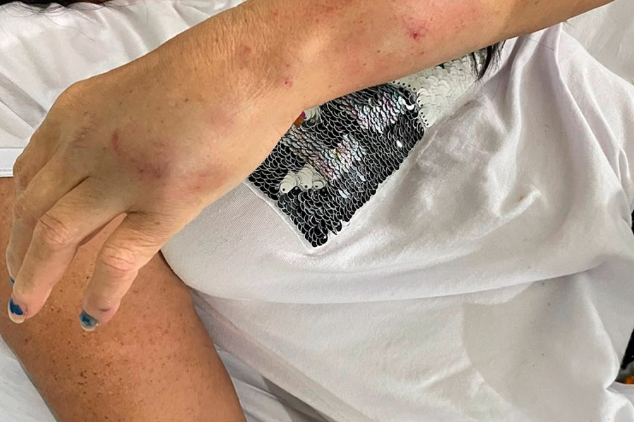 Em seguida, Josenildo tentou arrombar a porta de vidro do jardim de inverno a chutes e socos. A vítima, ao avistá-lo, fugiu para a casa do filho, que fica em frente. Antes de fugir do local, porém, o suspeito a alcançou e a agrediu com um pedaço de madeira, atingindo-a no braço direito e na cabeça.