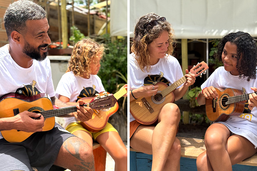 Durante este período, sete jovens moradores participaram de uma introdução musical ao cavaquinho, instrumento que dá vida a ritmos tradicionais brasileiros como o samba, o forró e o choro. As aulas foram conduzidas pelo músico autodidata Demétrius Caetano, com acompanhamento do instrumentista Fernando Teixeira, o Céu do Cavaco, proporcionando não apenas aprendizado técnico, mas também uma vivência cultural marcada por afeto, respeito e valorização da música brasileira.